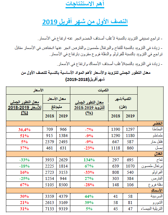 Mercuriale Bir El Kassaa de ,la première quinzaine d'avril 2019-Lien2-FORMAT PDF