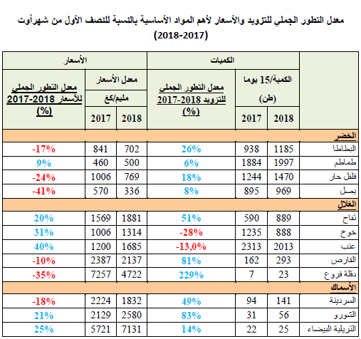 - انخفاض في الأسعار بالنسبة لأغلب أصناف الخضر(ماعدى الطماطم).