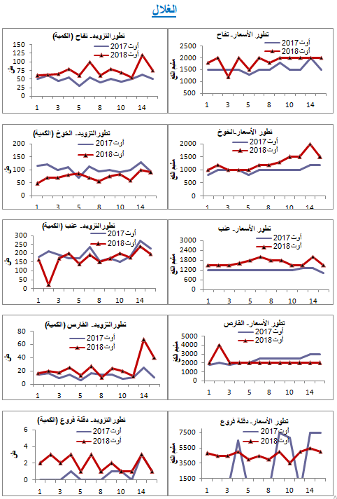 - ارتفاع في الأسعار بالنسبة لأغلب اصناف الغلال (ماعدى الدقلة فروع والقارص).