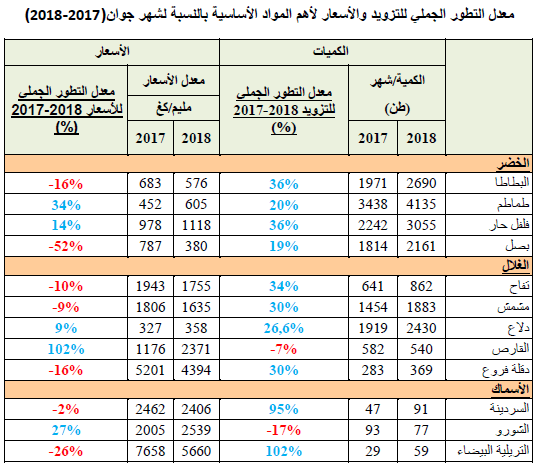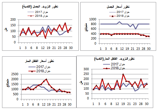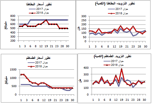 - انخفاض في الأسعار بالنسبة للبطاطا والبصل مقابل ارتفاع بالنسبة للطماطم والفلفل الحار.