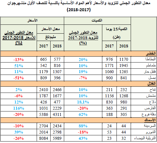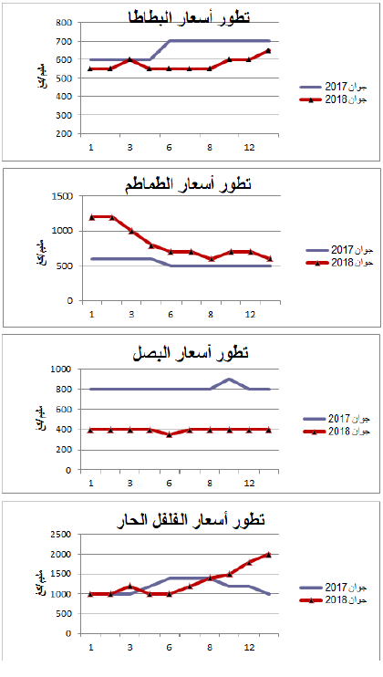 - ارتفاع في الأسعار بالنسبة للطماطم والفلفل الحار مقابل انخفاض في الأسعار بالنسبة للبطاطا والبصل.