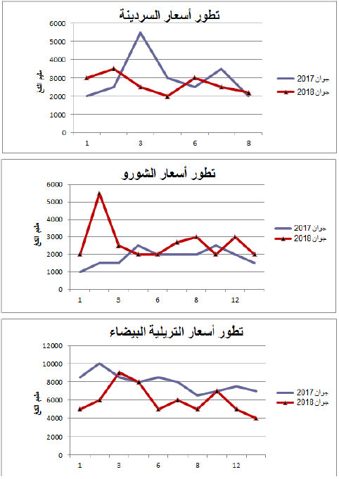 - انخفاض في الأسعار بالنسبة للسردينة والتريلية البيضاء مقابل ارتفاع بالنسبة للشورو