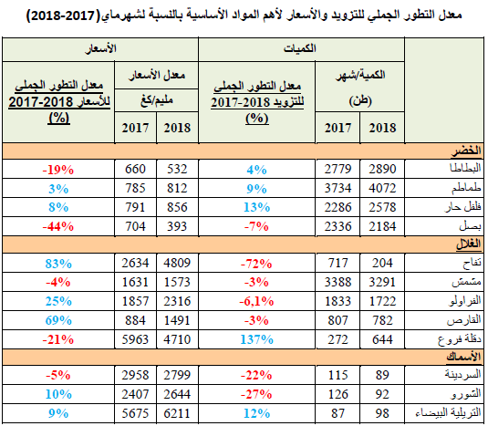 - انخفاض في الأسعار بالنسبة للبطاطا والبصل.