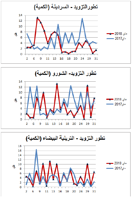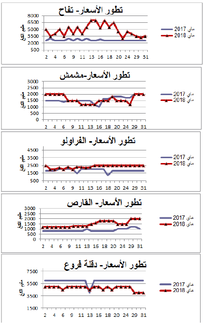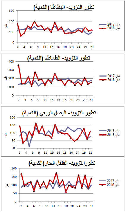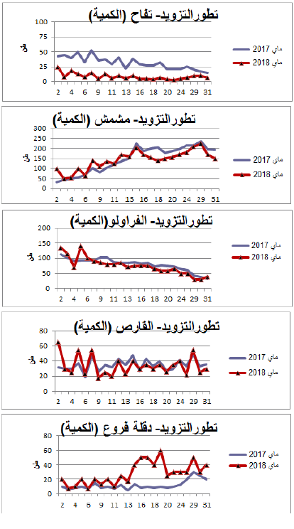 رسوم بيانية لتطور التزويد والأسعار اليومية لأهم المنتوجات