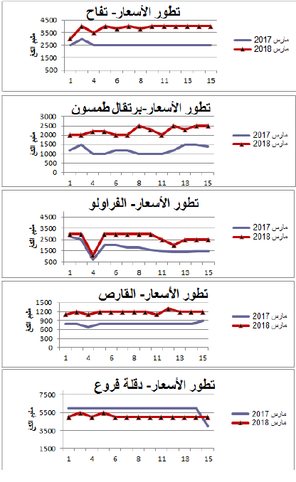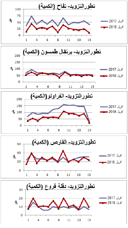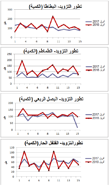 رسوم بيانية لتطور التزويدوالأسعار اليومية لأهم المنتوجات
