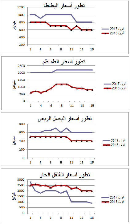 - زيادة في التزويد بالنسبة لجل أصناف الخضر انجر عنها انخفاض في الأسعار (ما عدى الفلفل الحار).