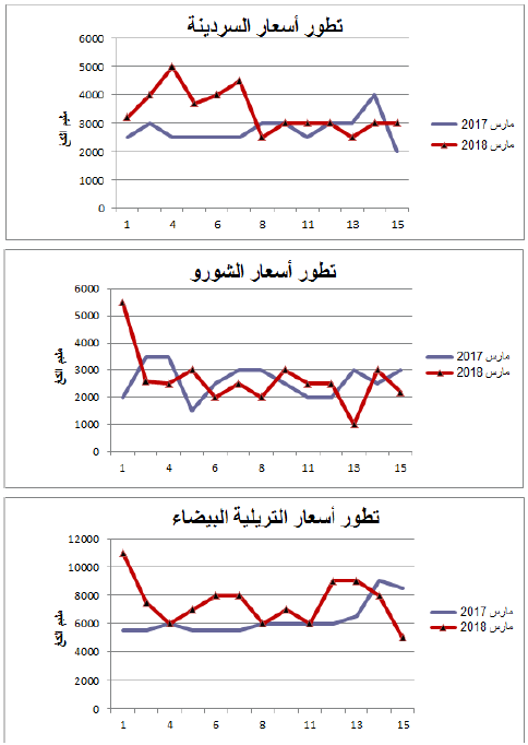- تراجع في العرض بالنسبة للسردينة والتريلية البيضاء.