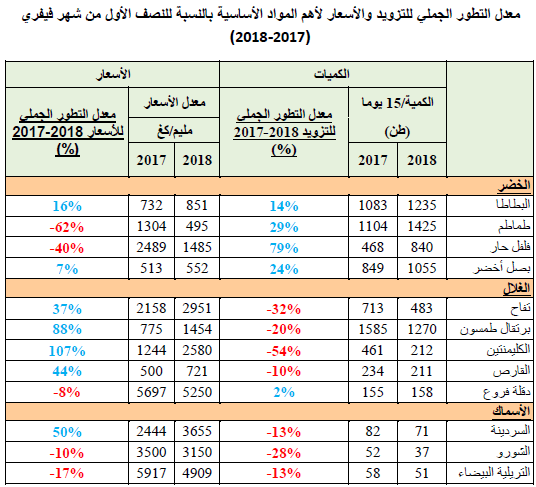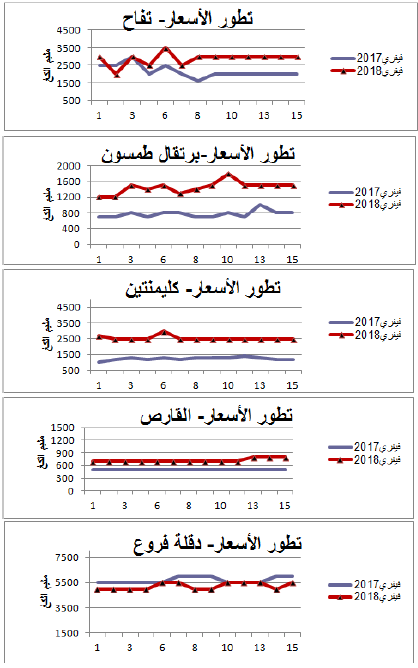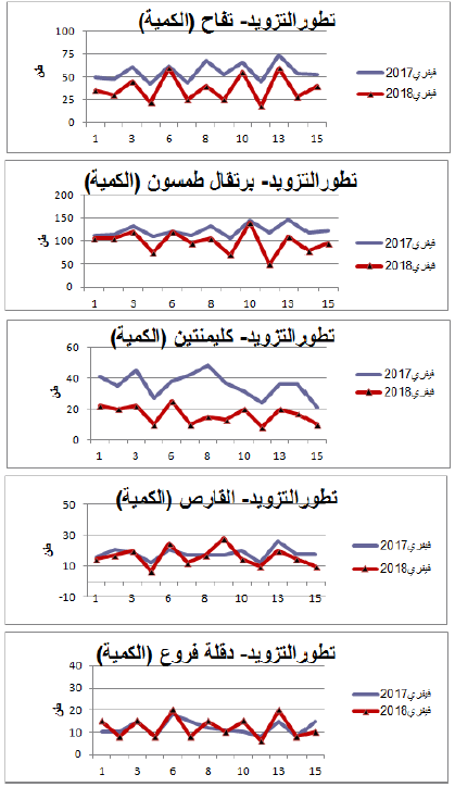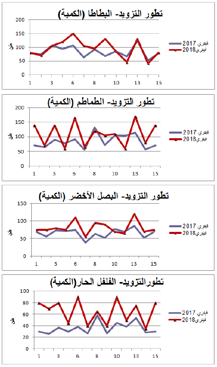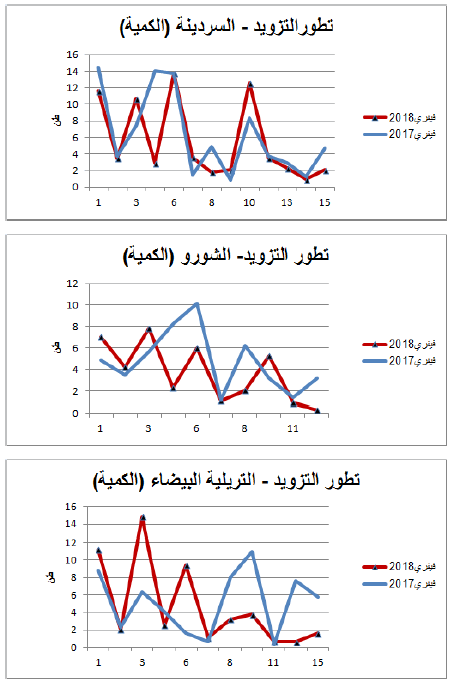 رسوم بيانية لتطور التزويد والأسعار اليومية لأهم المنتوجات شهر فيفري