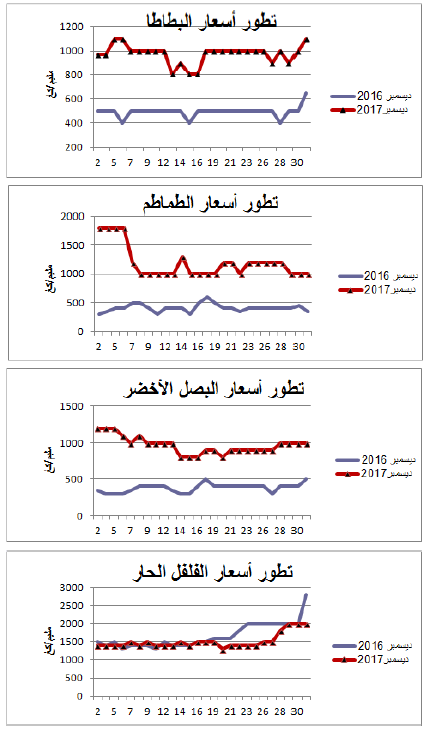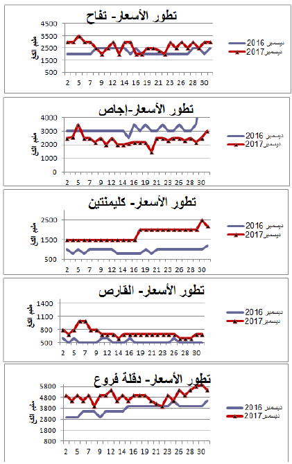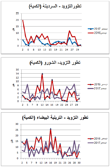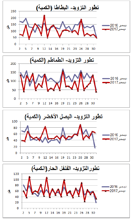 رسوم بيانية لتطور التزويد والأسعار اليومية لأهم المنتوجات