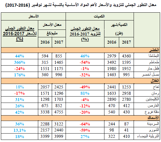 - تراجع في التزويد بالنسبة لأغلب أصناف الغلال انجر عنه ارتفاع في الأسعار. في حين سجلت زيادة في التزويد بالنسبة للرمان (%81) انجر عنها انخفاض نسبي في الأسعار (-17%).