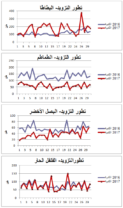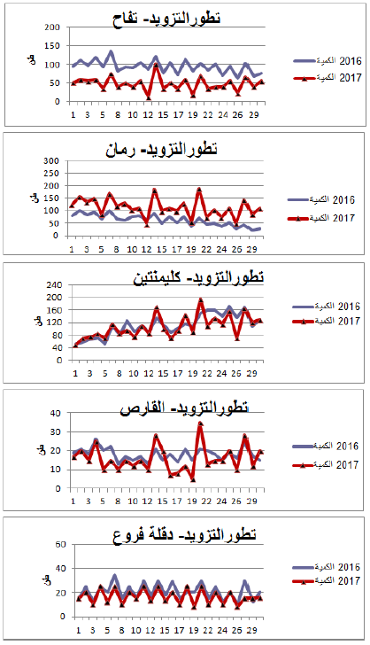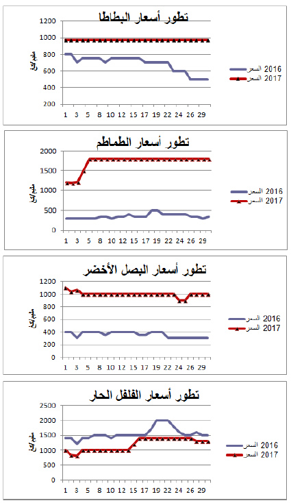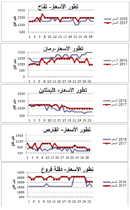 رسوم بيانية لتطور التزويد والأسعار اليومية لأهم المنتوجات
