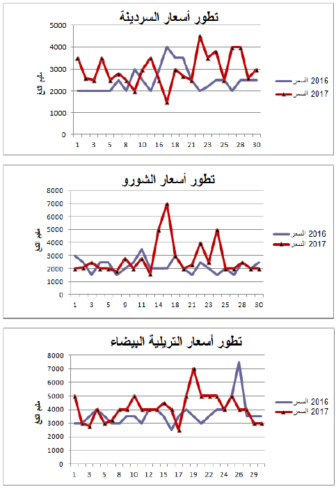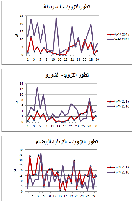 - تراجع في العرض بالنسبة للسردينة والشورو مقابل زيادة بالنسبة للتريلية البيضاء.