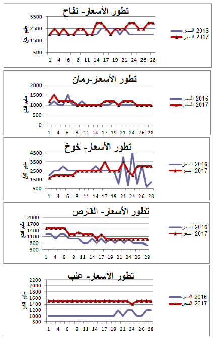 - ارتفاع في الأسعار بالنسبة لأغلب أصناف الغلال (ماعدى الخوخ).