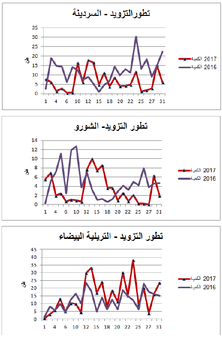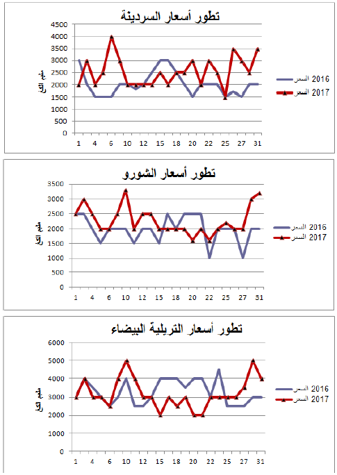 - تراجع في العرض بالنسبة للشورو والسردينة مقابل زيادة بالنسبة للتريلية البيضاء.
