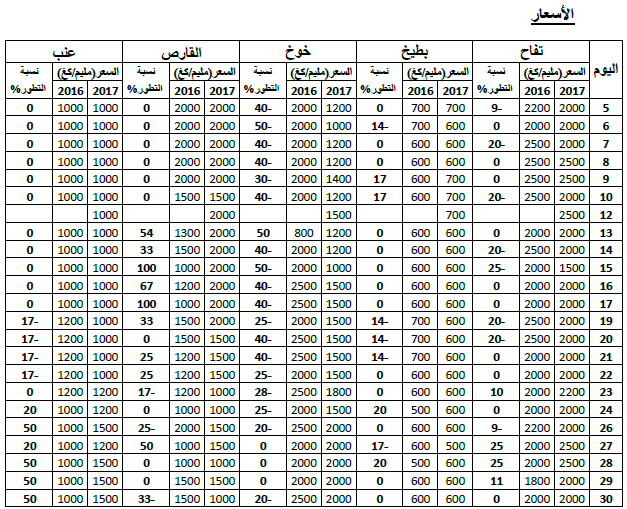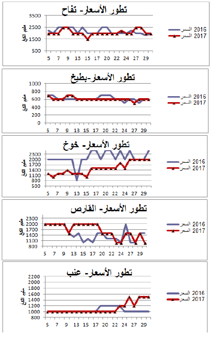 القارص: ارتفاع نسبي في الأسعار مقارنة بنفس الفترة من سنة 2016 ويقدر مؤشرالأسعار بـ104.