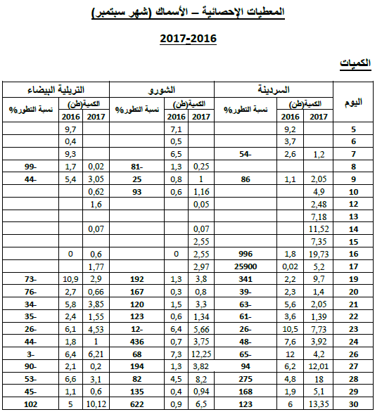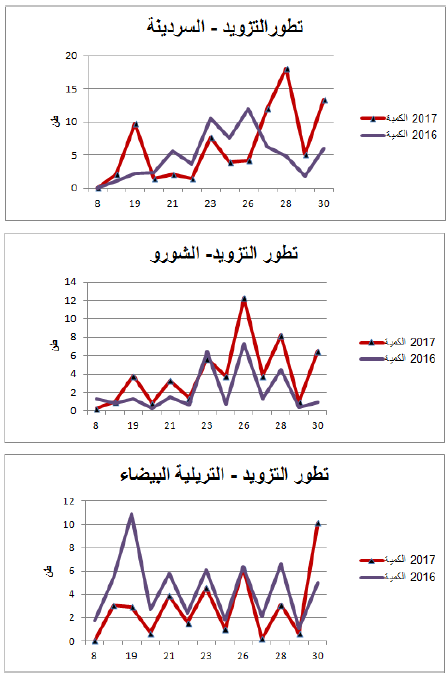 السردينة :زيادة في التزويد مقارنة بنفس الفترة من سنة 2016 ويقدر مؤشر الكميات بـ 139.