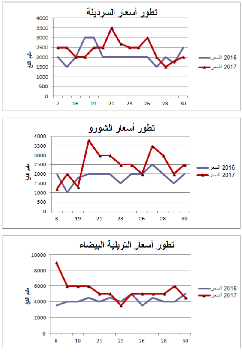 - زيادة في العرض بالنسبة للشورو والسردينة مقابل تراجع بالنسبة للتريلية البيضاء.