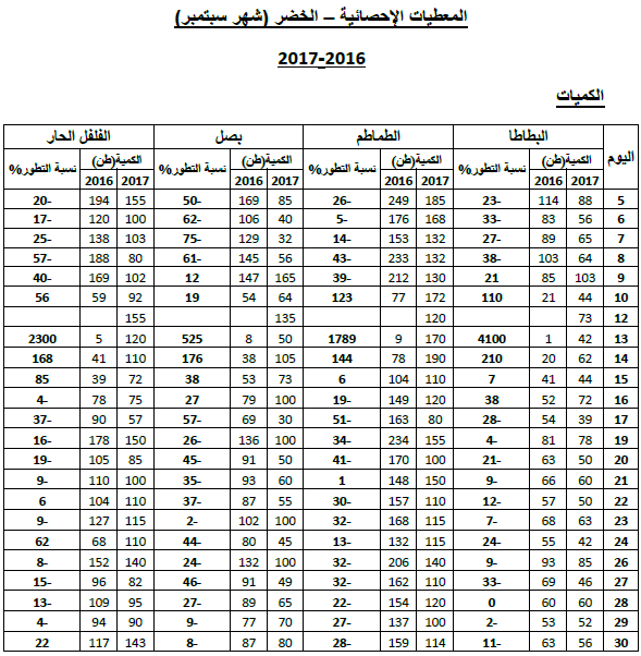 الشورو : زيادة في التزويد مقارنة بنفس الفترة من سنة 2016 ويقدر مؤشر الكميات بـ 128.
