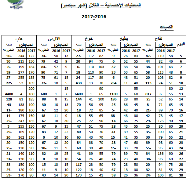 القارص: تراجع في التزويد مقارنة بنفس الفترة من سنة 2016 ويقدر مؤشر الكميات بـ 55.