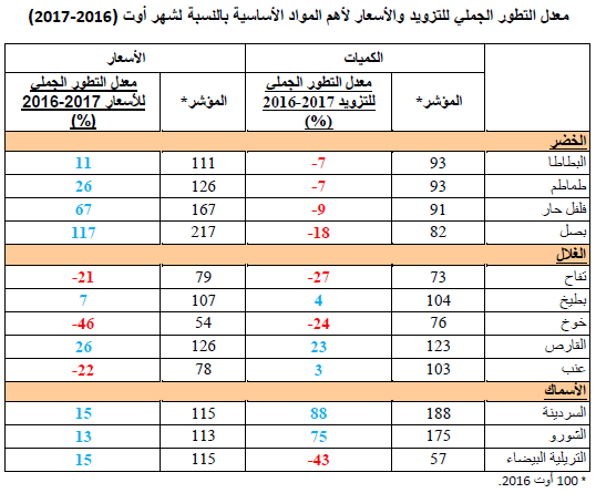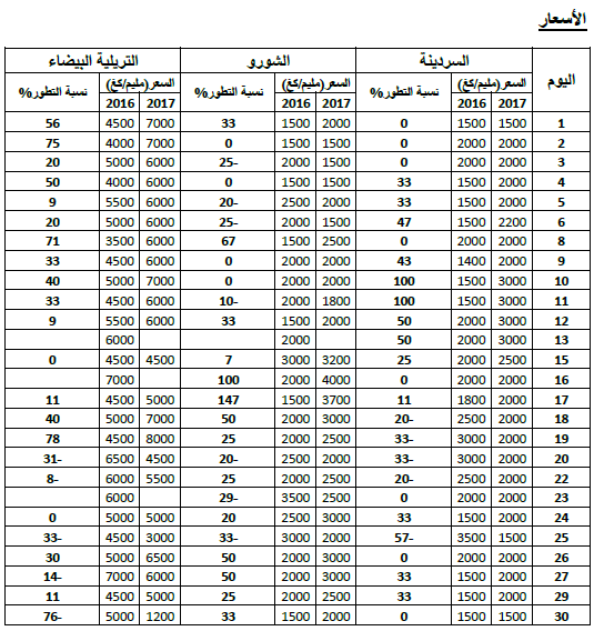 الشورو : ارتفاع نسبي في الأسعار مقارنة بنفس الفترة لسنة 2016 ويقدر مؤشرالأسعار بـ113.