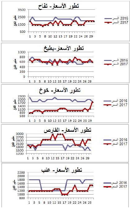 القارص: ارتفاع نسبي في الأسعار مقارنة بنفس الفترة من سنة 2016 ويقدر مؤشرالأسعار بـ126.
