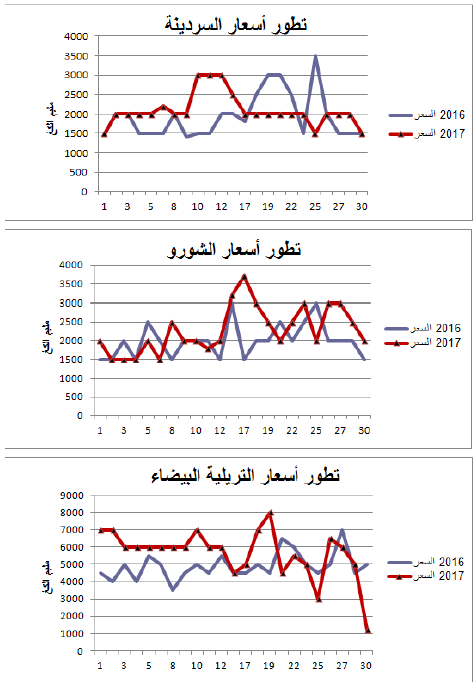 - زيادة في العرض بالنسبة للشورو والسردينة مقابل تراجع بالنسبة للتريلية البيضاء.