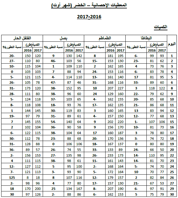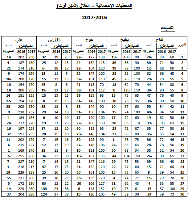 القارص: زيادة نسبية في التزويد مقارنة بنفس الفترة من سنة 2016 ويقدر مؤشر الكميات بـ 123.