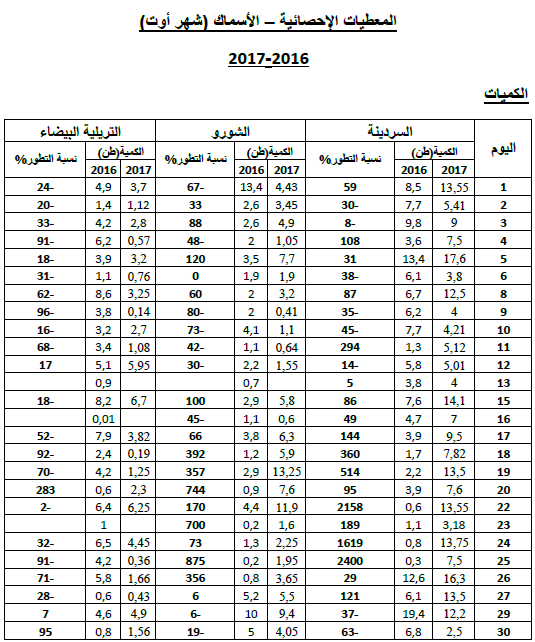 السردينة :زيادة في التزويد مقارنة بنفس الفترة من سنة 2016 ويقدر مؤشر الكميات بـ 188.