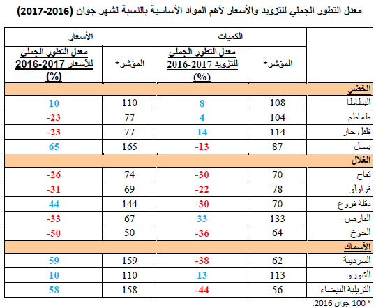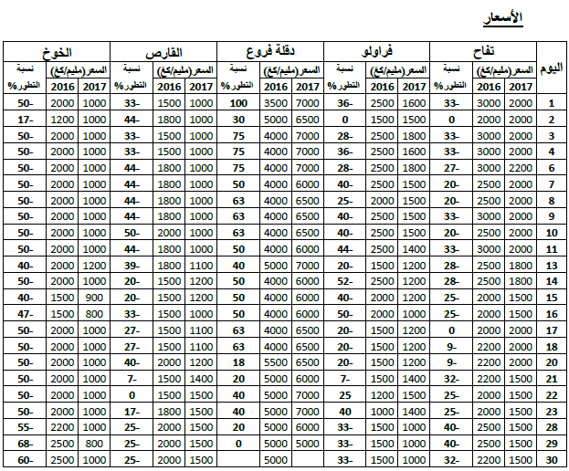 القارص: انخفاض في الأسعار مقارنة بنفس الفترة من سنة 2016 ويقدر مؤشرالأسعار بـ67.