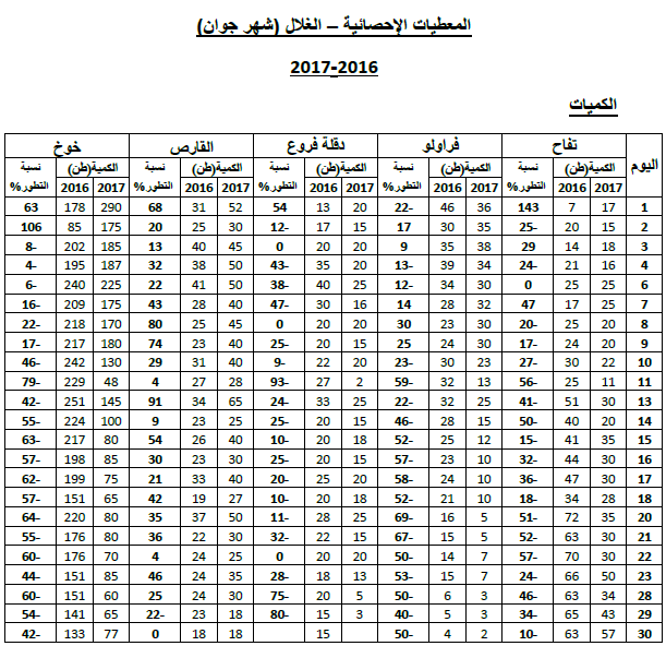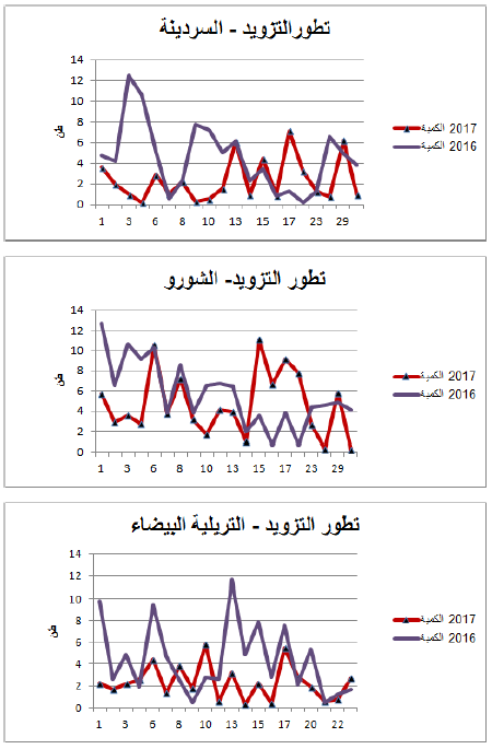 القارص: زيادة في التزويد مقارنة بنفس الفترة من سنة 2016 ويقدر مؤشر الكميات بـ 133.