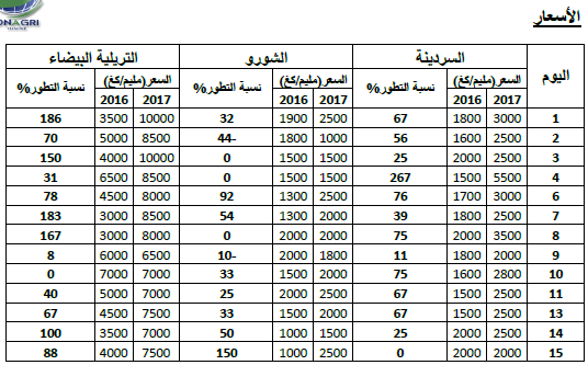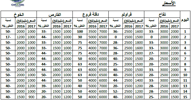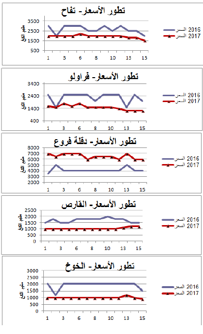 القارص: انخفاض في الأسعار مقارنة بنفس الفترة من سنة 2016 ويقدر مؤشرالأسعار بـ61.