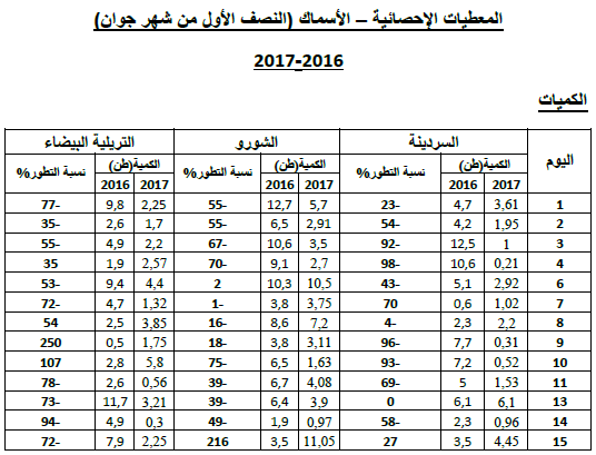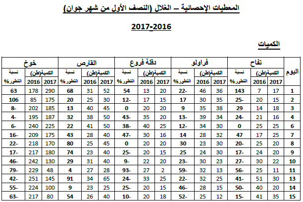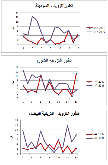 القارص: زيادة في التزويد مقارنة بنفس الفترة من سنة 2016 ويقدر مؤشر الكميات بـ 141.