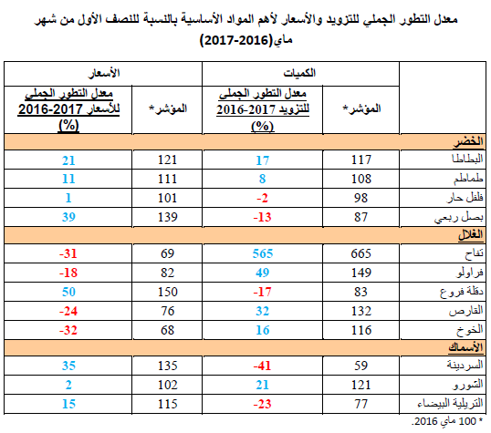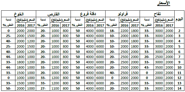 القارص: انخفاض نسبي في الأسعار مقارنة بنفس الفترة من سنة 2016 ويقدر مؤشرالأسعار بـ76.
