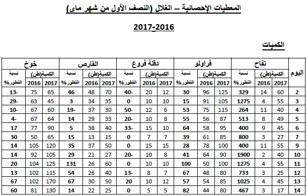 القارص: زيادة نسبية في التزويد مقارنة بنفس الفترة من سنة 2016 ويقدر مؤشر الكميات بـ 132.