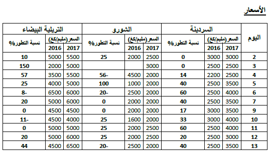 الشورو : استقرار نسبي في الأسعار مقارنة بنفس الفترة لسنة 2016 ويقدر مؤشرالأسعار بـ102.