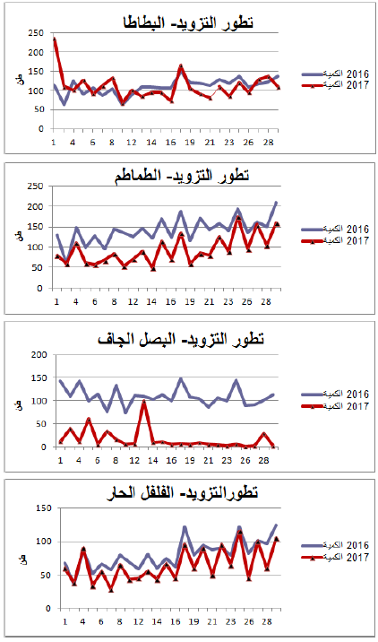 - تراجع في التزويد بالنسبة لأغلب أصناف الخضر ما عدى البطاطا.