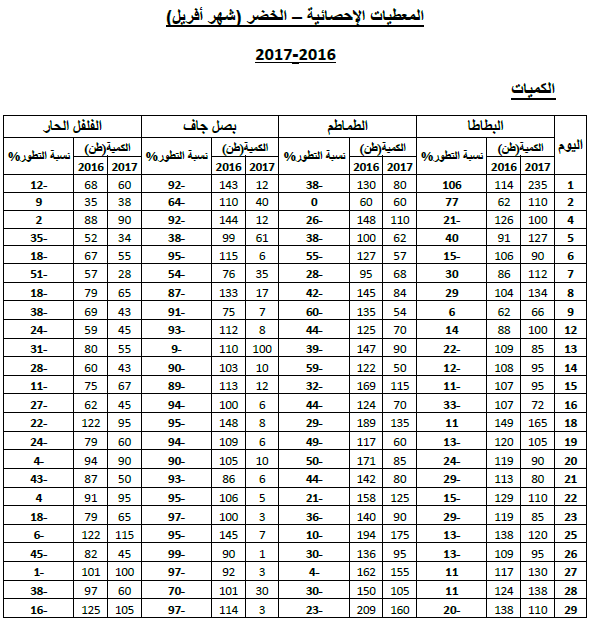 القارص: استقرار نسبي في التزويد مقارنة بنفس الفترة من سنة 2016 ويقدر مؤشر الكميات بـ 97.
