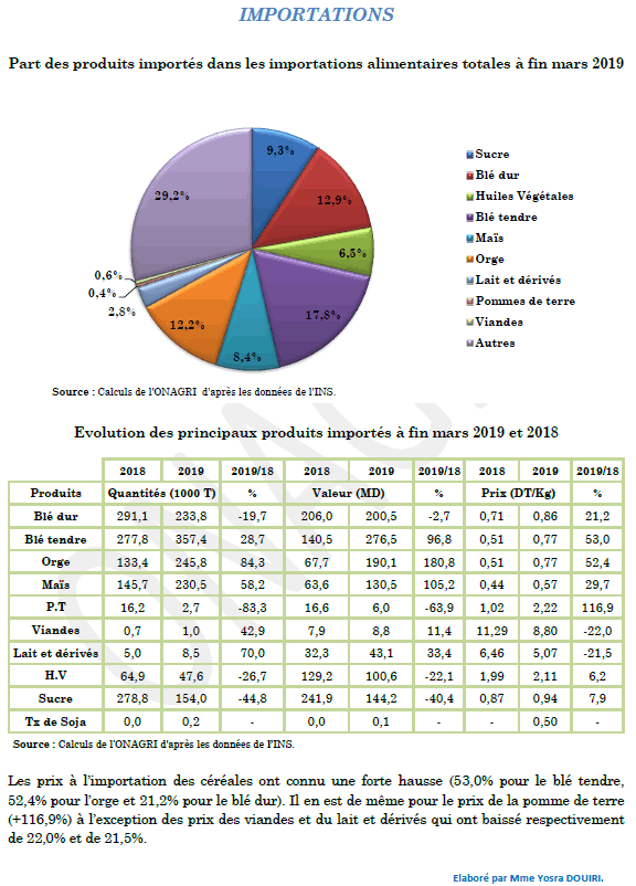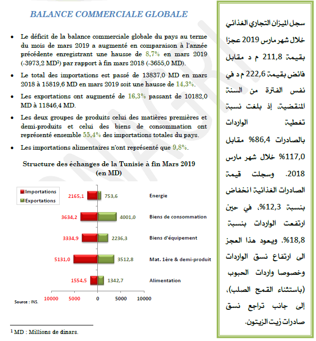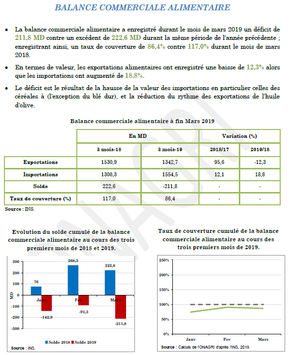 LA BALANCE ALIMENTAIRE A FIN MARS 2019