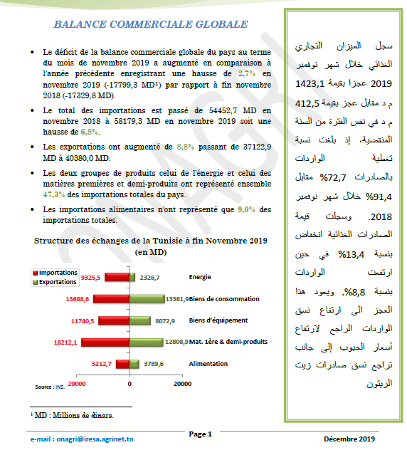 LA BALANCE ALIMENTAIRE A FIN NOVEMBRE 2019 (PDF)