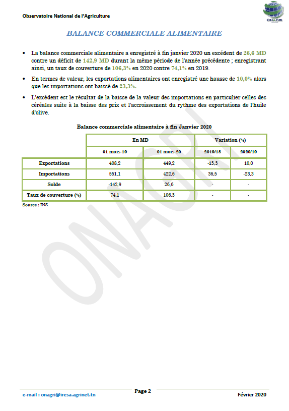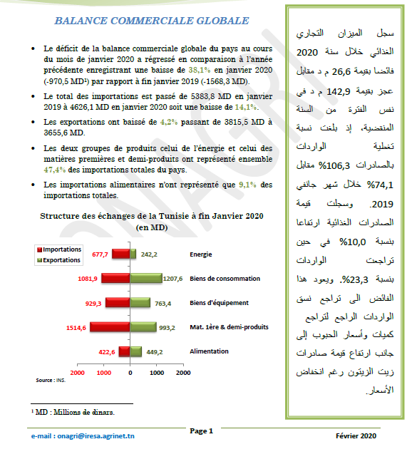 LA BALANCE COMMERCIALE ALIMENTAIRE Janvier 2020