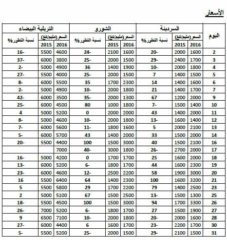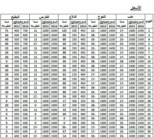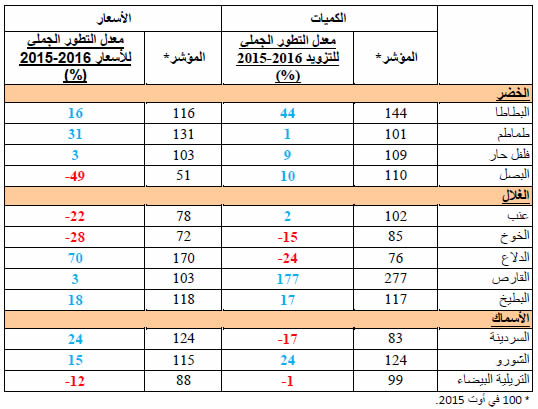 القارص: استقرار نسبي في الأسعار مقارنة بنفس الفترة من سنة 2015 ويقدر مؤشرالأسعار بـ103.