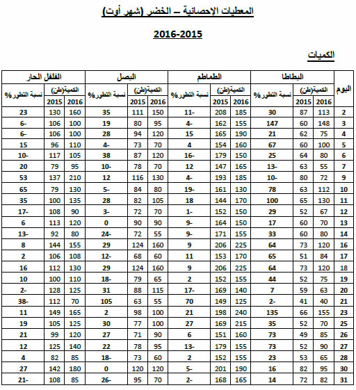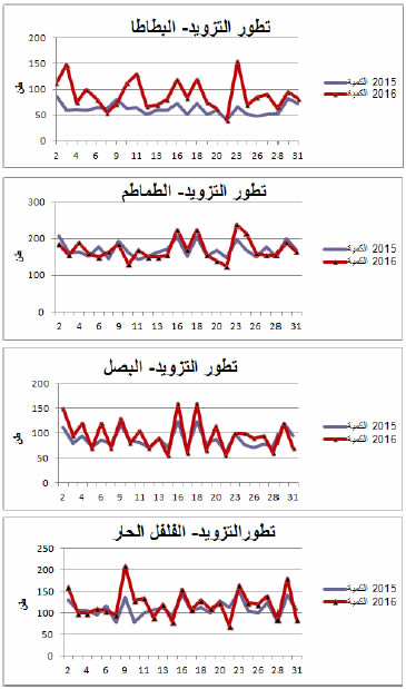 - زيادة في التزويد بالنسبة لأغلب أصناف الخضر.