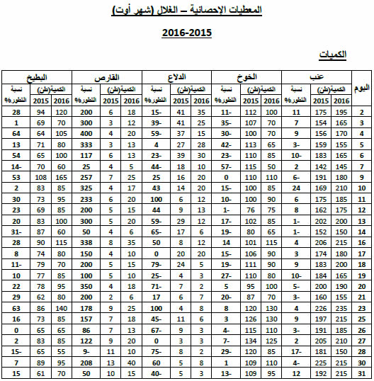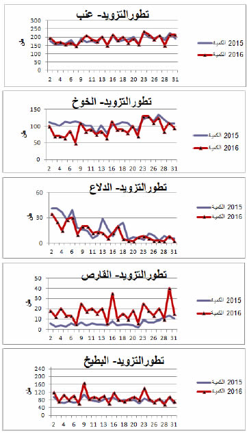القارص: زيادة هامة في التزويد مقارنة بنفس الفترة من سنة 2015 ويقدر مؤشر الكميات بـ277.