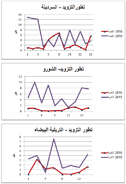 القارص: زيادة نسبية في التزويد مقارنة بنفس الفترة من سنة 2015 ويقدر مؤشر الكميات بـ 113.