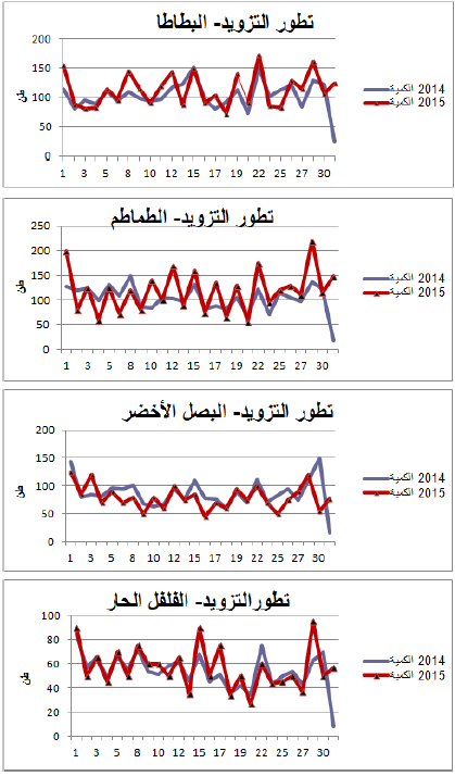 الفلفل الحار: زيادة نسبية في التزويد مقارنة بنفس الفترة من سنة 2014 ويقدر مؤشر الكميات بـ  105