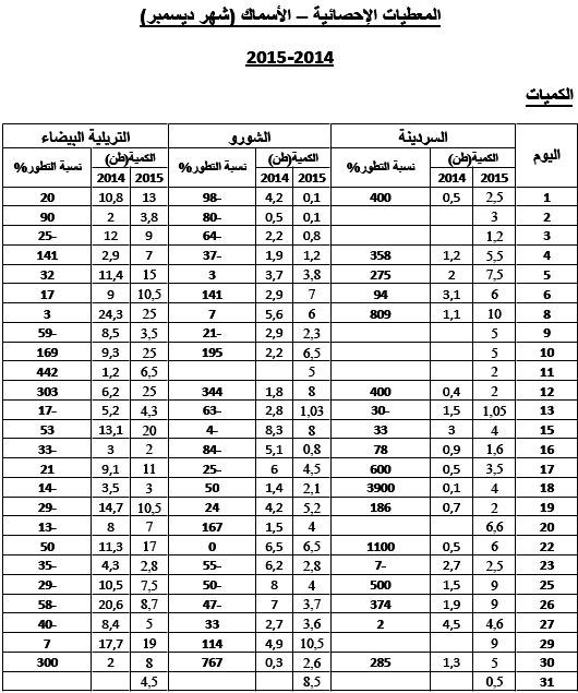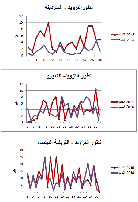 السردينة :زيادة هامة في التزويد مقارنة بنفس الفترة من سنة 2014 ويقدر مؤشر الكميات بـ 328.
