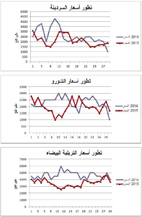 السردينة : انخفاض نسبي في الأسعار مقارنة بنفس الفترة من سنة  2014 ويقدر مؤشرالأسعار بـ83.