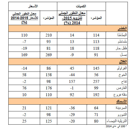 القارص: ارتفاع في الأسعار مقارنة بنفس الفترة من سنة 2014 ويقدر مؤشرالأسعار بـ176.