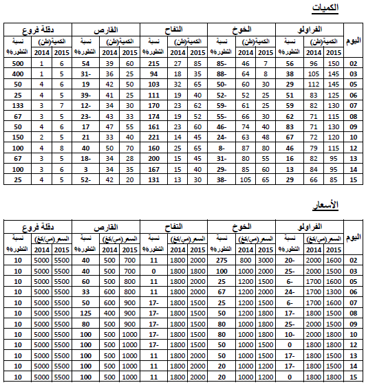 دقلة فروع: زيادة في التزويد مقارنة بنفس الفترة من سنة 2014 ويقدر مؤشر الكميات بـ 192.