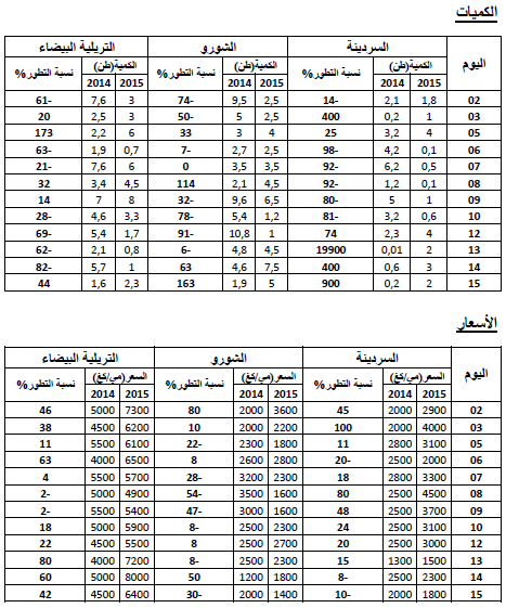 الشورو : تراجع في التزويد مقارنة بنفس الفترة من سنة 2014 ويقدر مؤشر الكميات بـ 71.
